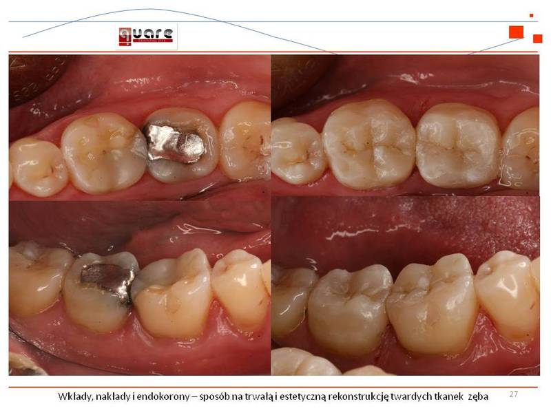 Wkłady, nakłady, endokorony-sposób na trwałą i estetyczną rekonstrukcję twardych tkanek zęba.